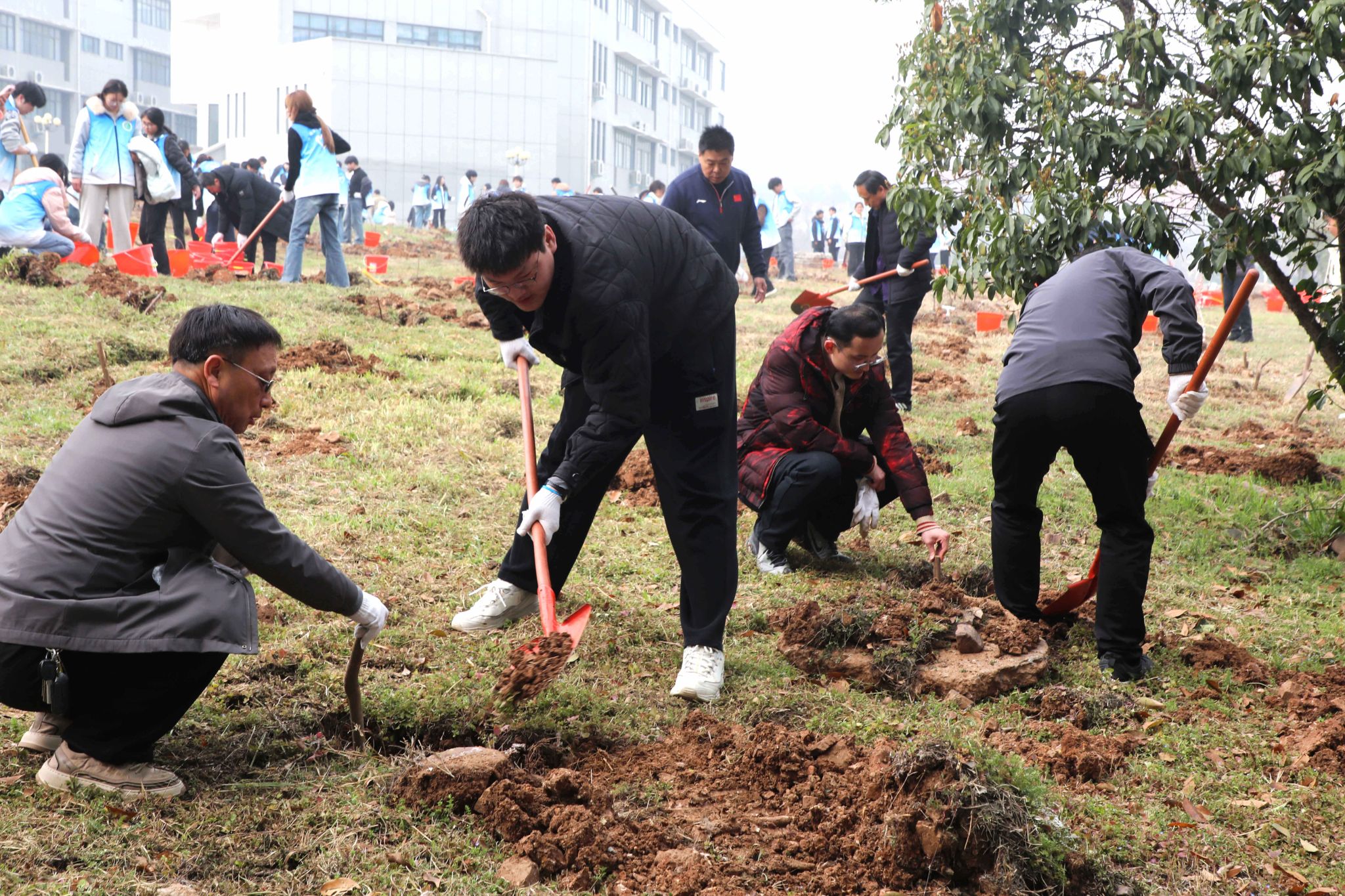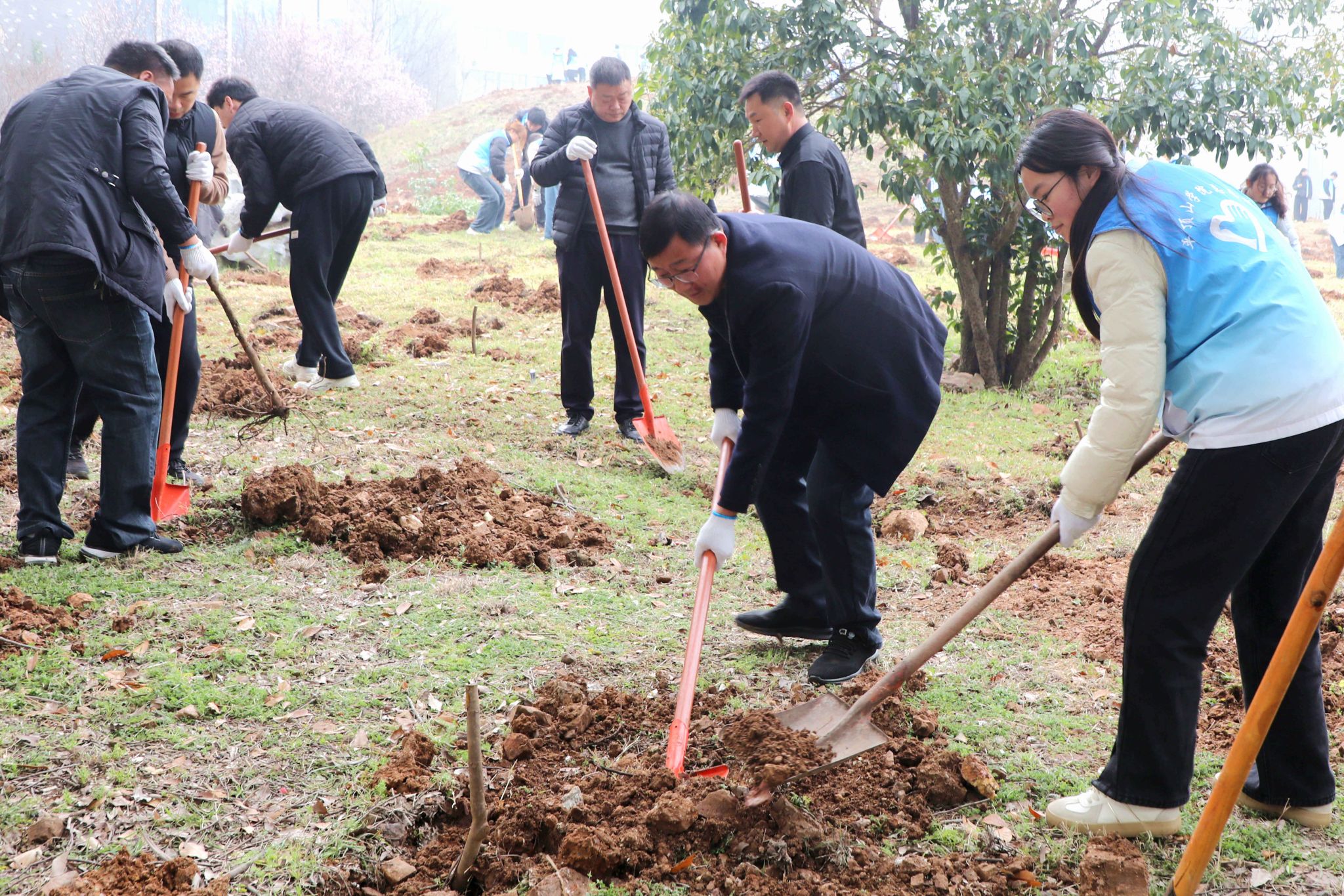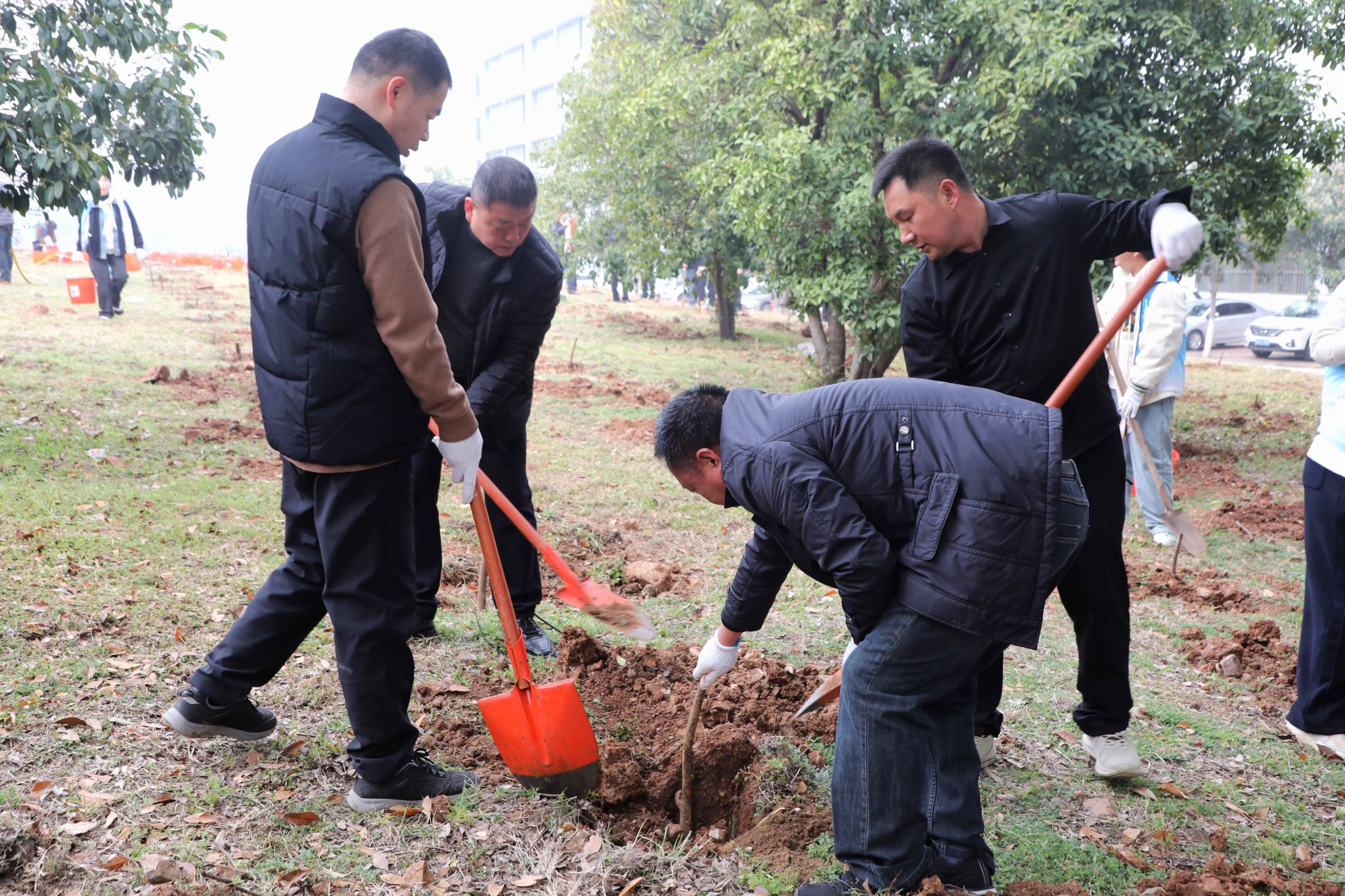 活动现场,志愿者们以小组为单位,分工协作、配合默契,挖坑、放苗、填土、压实、浇水,每一道工序都细致认真、干劲十足。热火朝天的劳动场景中,大家用汗水浇灌新苗,用协作传递温情,充分展现了机关教职工践行生态理念、主动担当作为的良好风貌。
