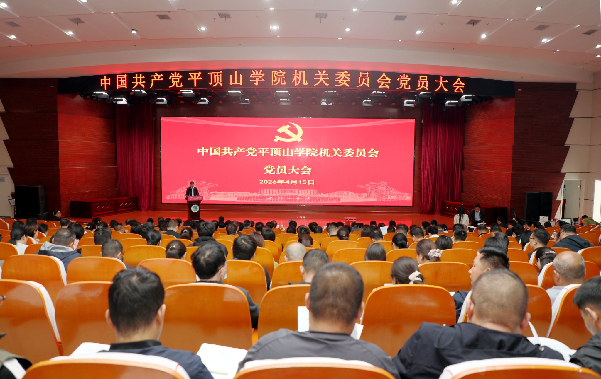 4月15日下午,中国共产党平顶山学院机关委员会党员大会在湖滨校区中心会议室召开,220名机关党员代表参加会议,机关党委换届和机关纪委选举各项任务圆满完成。校领导侯延民、李波、史永昌以普通党员身份出席会议,上一届机关党委委员、教务处处长李青彬主持会议。